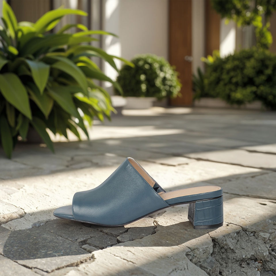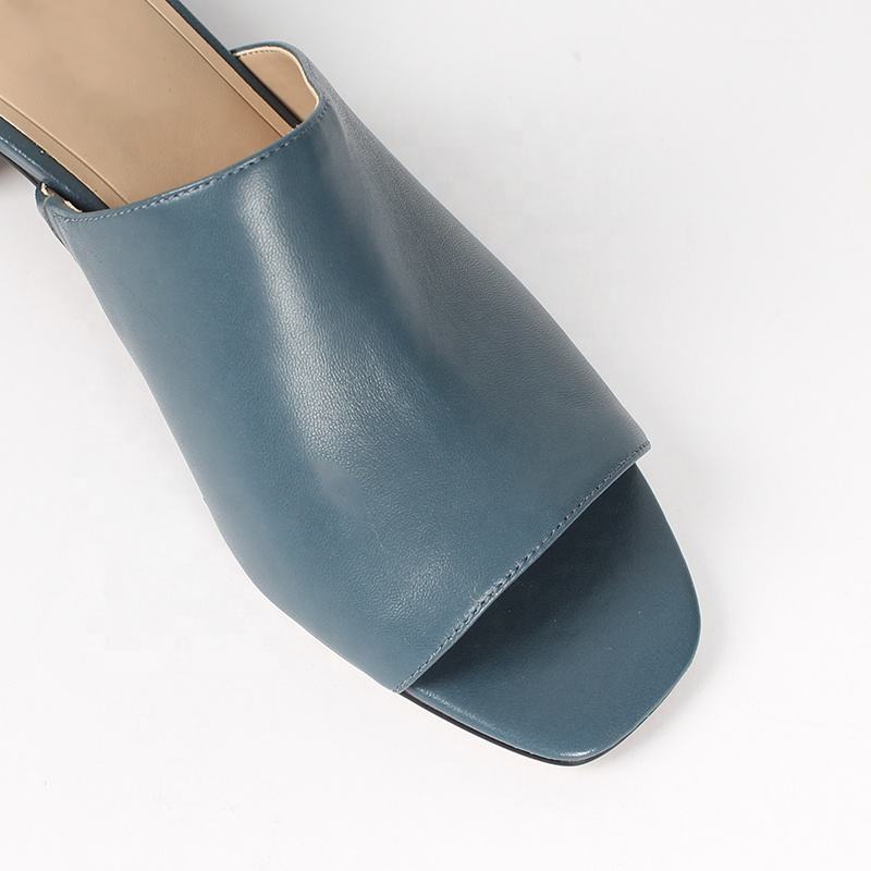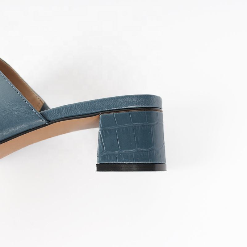 Mules en cuir personnalisables pour femmes, sandales à talon carré bas et épais, à bout ouvert, talon bloc carré, printemps-été