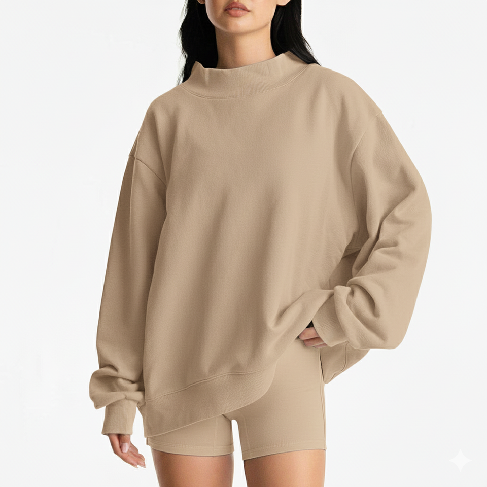 Women's Customized Embroidered Patch Winter Oversized Reversible Mock Neck Sweatshirt Breathable Front Eco-Friendly