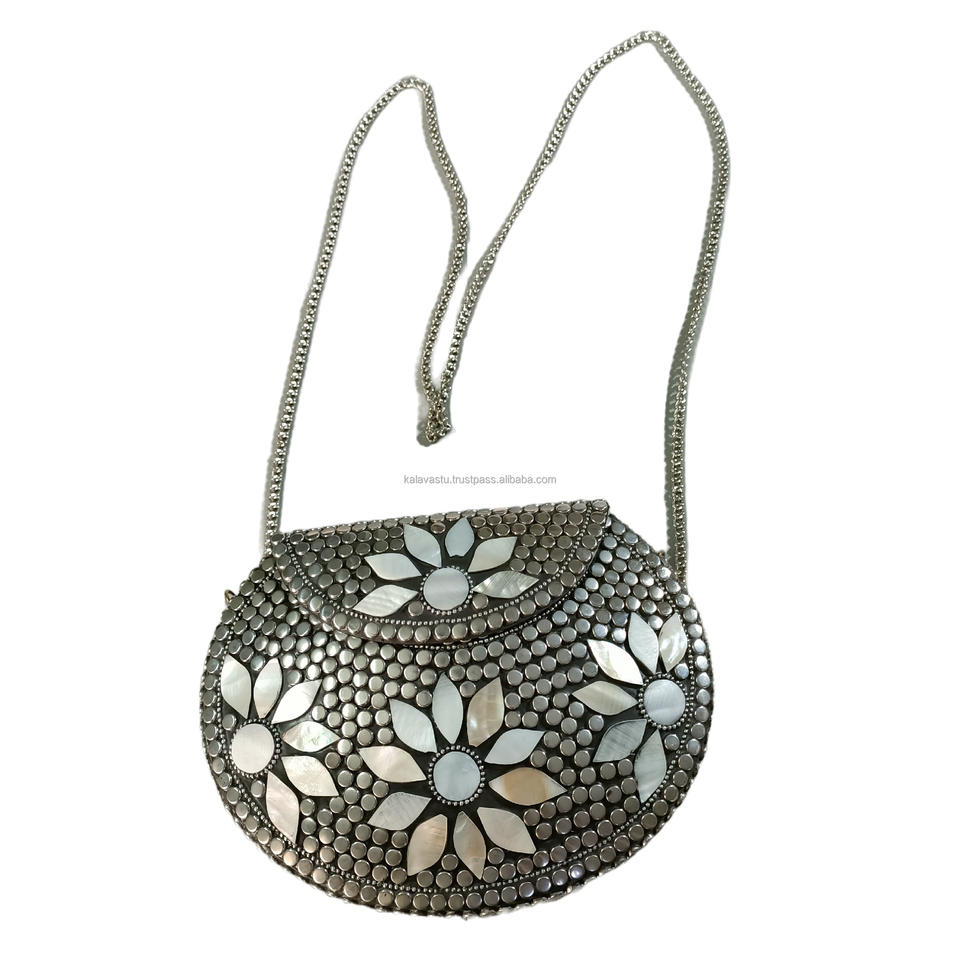 Sac à main décoratif pour femme avec métal en pierre Meenakari en bois