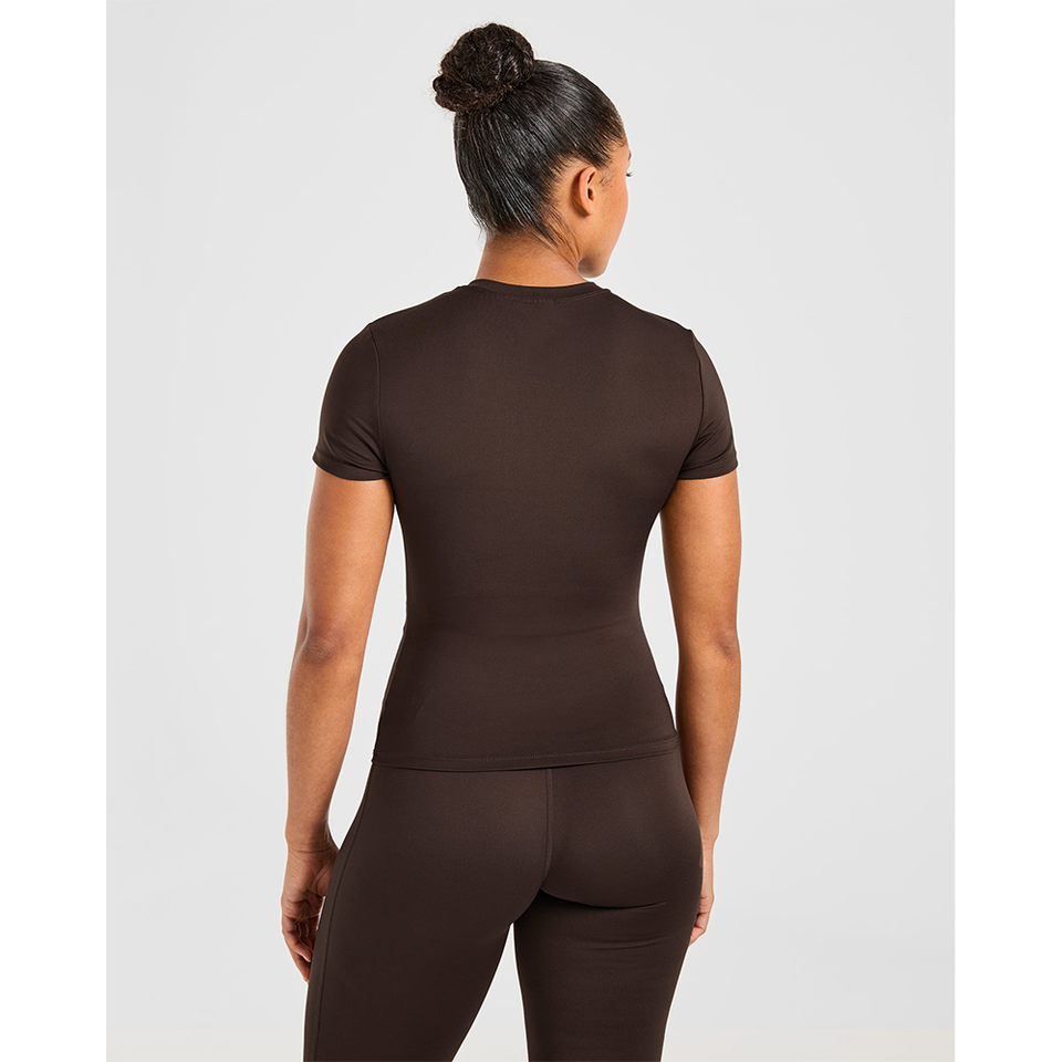 Femmes Deep Cocoa Brown Designer Fit Casual Yoga Gym Tee Doux Léger Été Respirant À Manches Courtes Sculpt T-shirt
