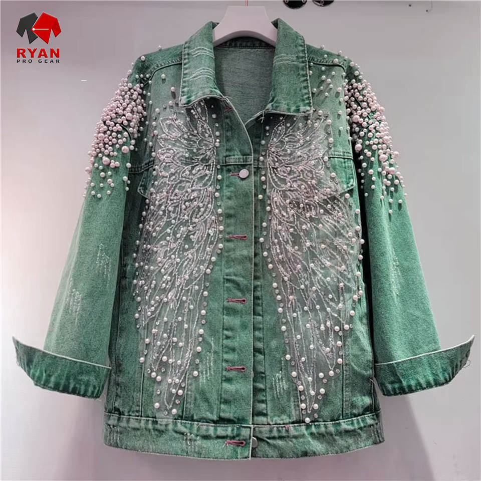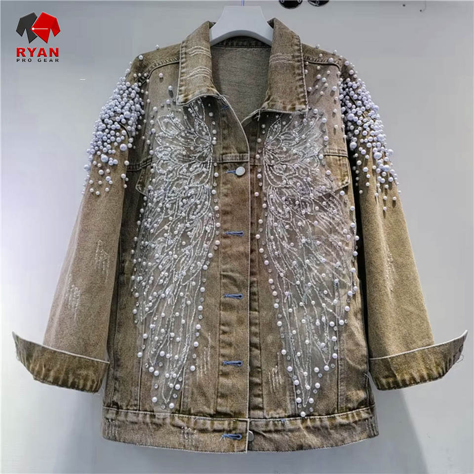 Veste en jean pour femme avec boutons sur le devant, col classique et finition en tissu denim de haute qualité