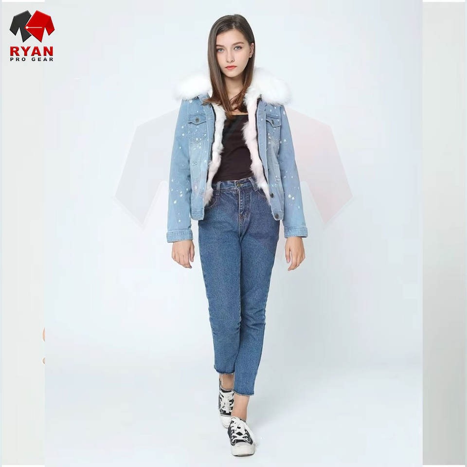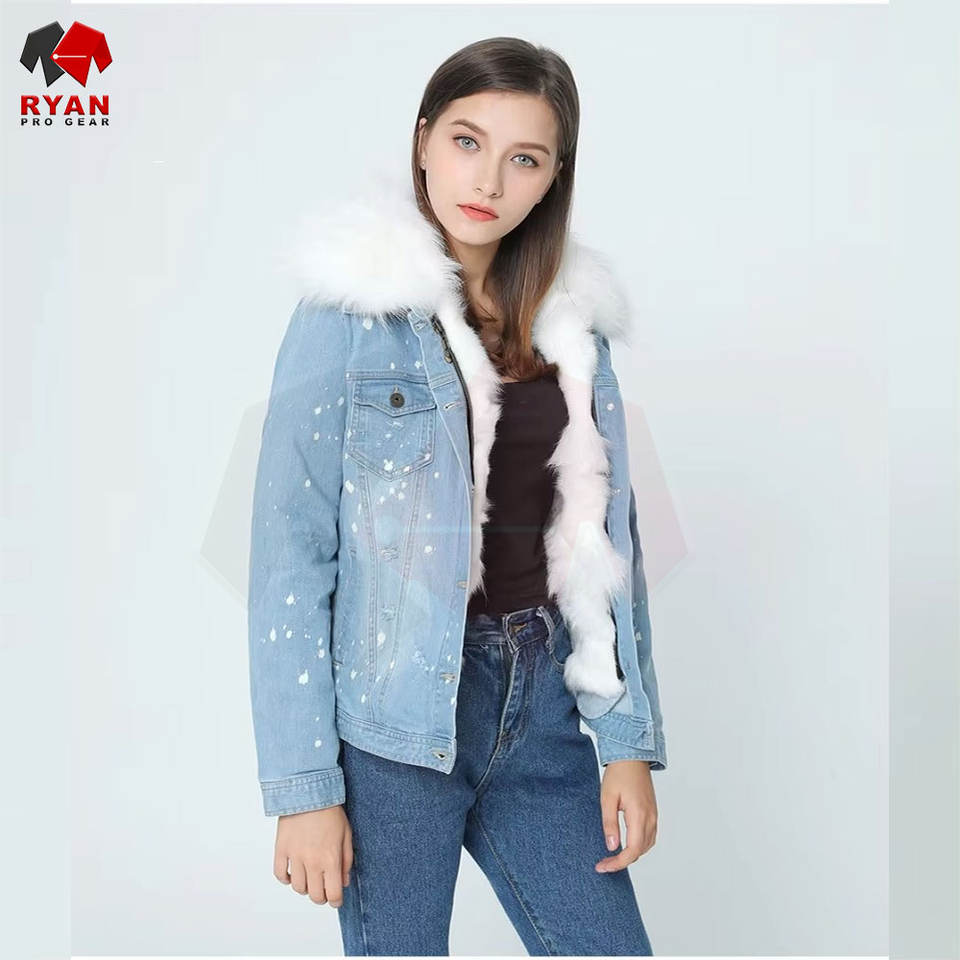 Veste en jean pour femme avec une coupe décontractée, des manches longues, une fermeture à boutons et un style tendance Veste en jean avec fourrure