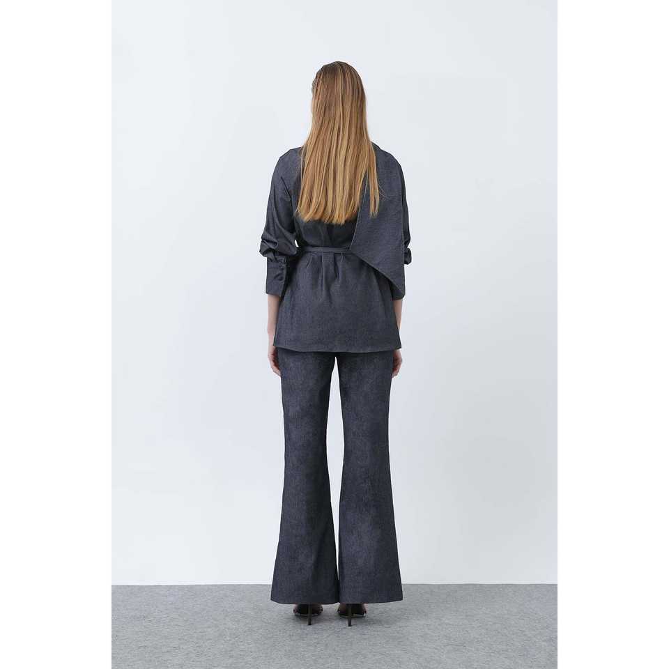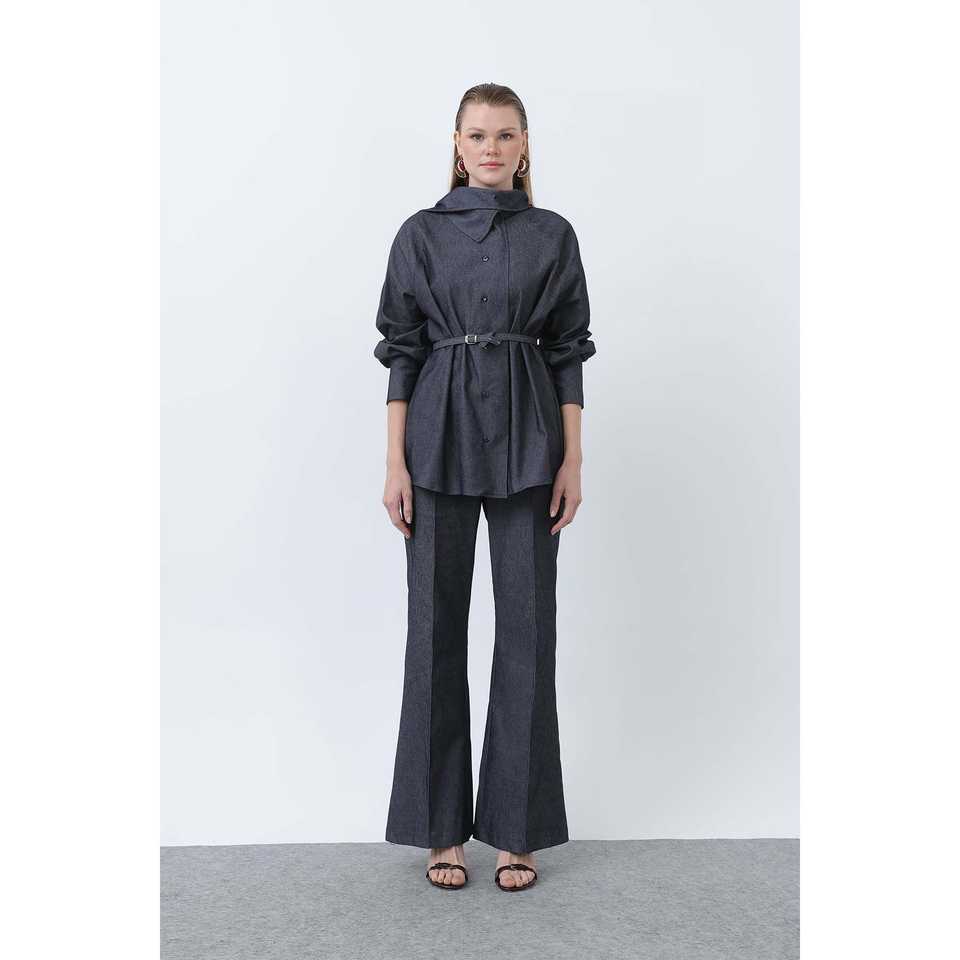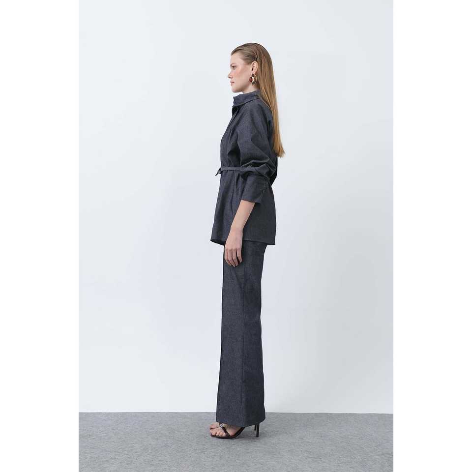 Ensemble tailleur en jean pour femme avec ceinture, manches trois quarts, infroissable, décontracté, pour l'automne