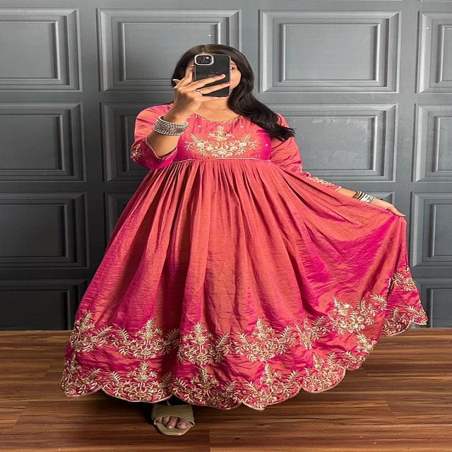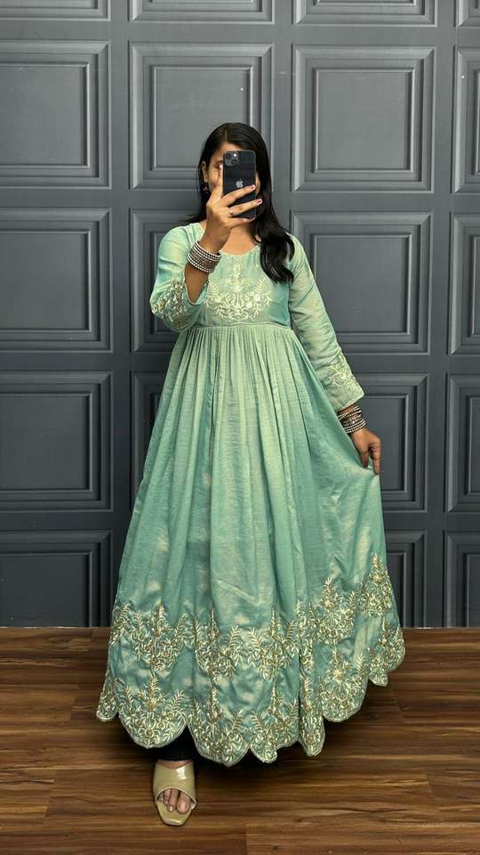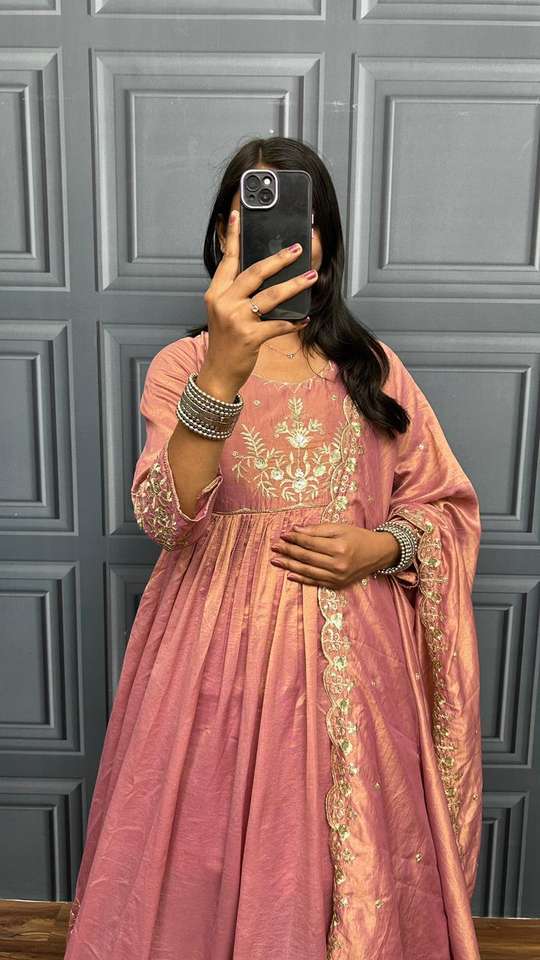 Women's Designer Bollywood Kurta / Kurti Tissue Dual Shaded Fabric Along with Fancy Zari Sequence Work Cutwork Pattern