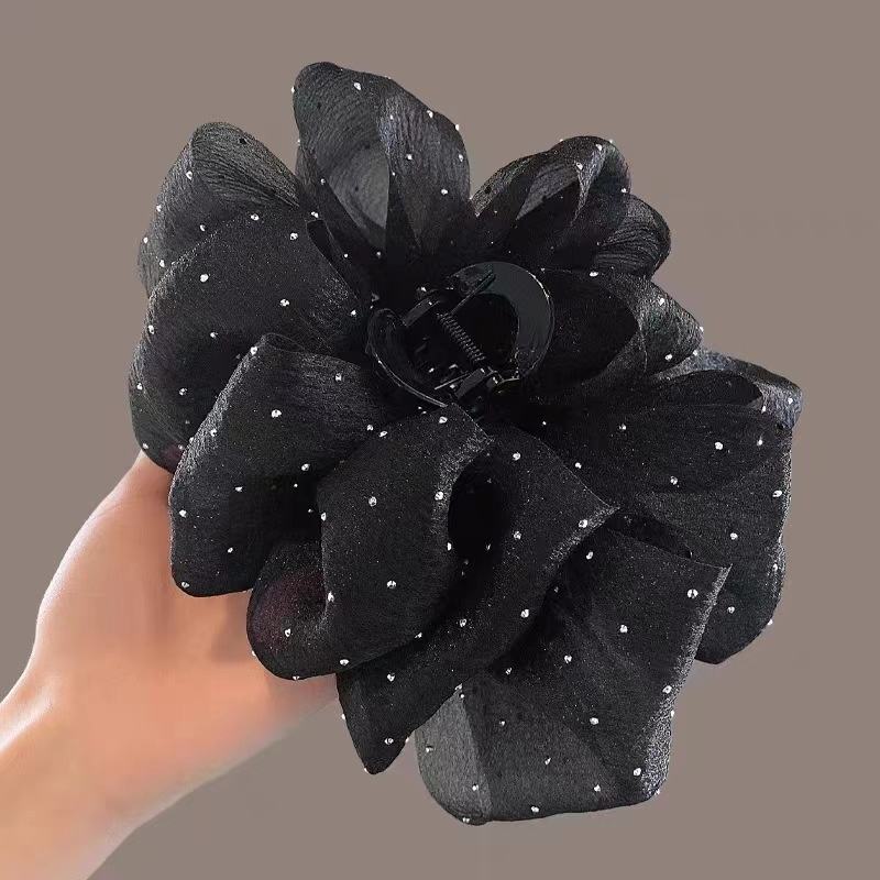 Pince à cheveux griffe ciel étoilé en maille double face pour femmes Runaway Princess Head Bow Acetate Material Shark Hair Accessory
