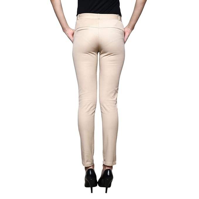 Women's Double Sided Pocket Casual & Formal Trouser Regular Fit Breathable Mid Waist Embroidered for Summer