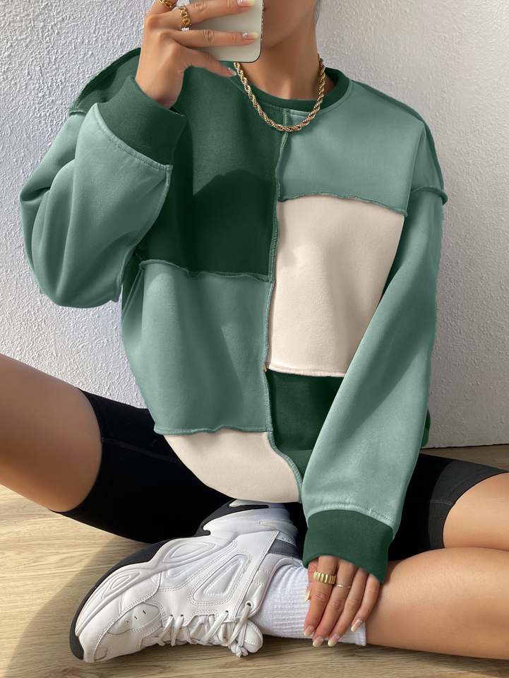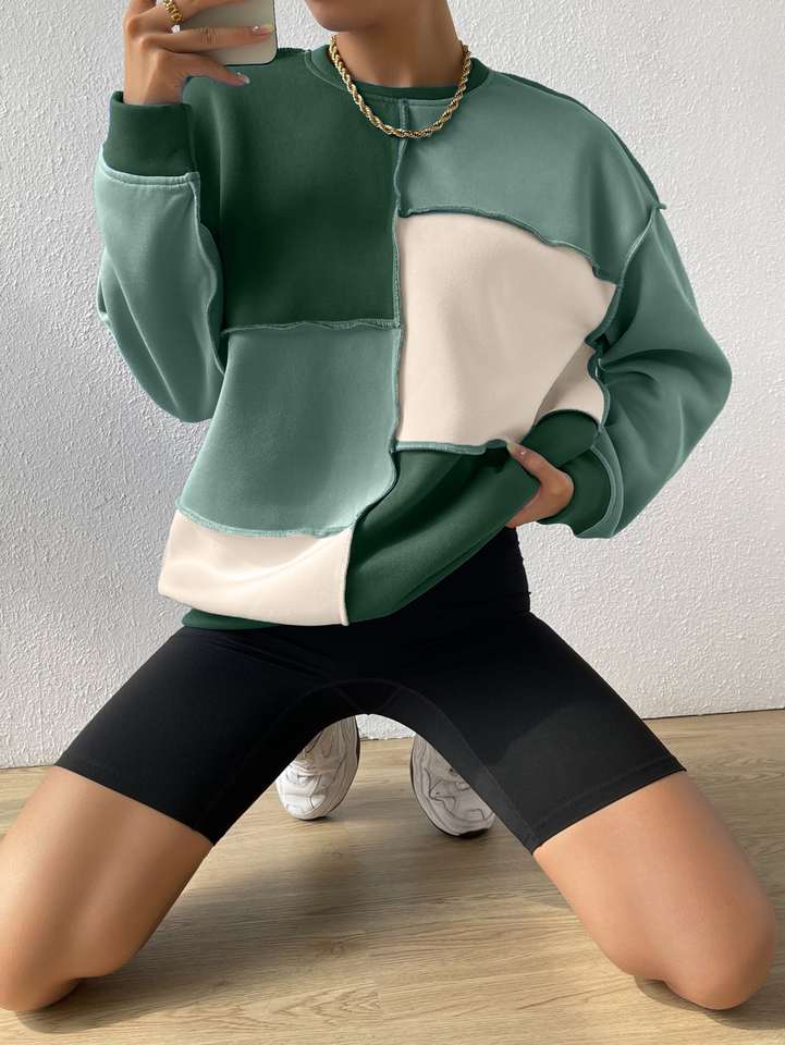 Women's Drop Shoulder Colorblock Sweatshirt Multicolor Streetwear Women's Fleece Pullover Plain Thick Colorblock Sweatshirt