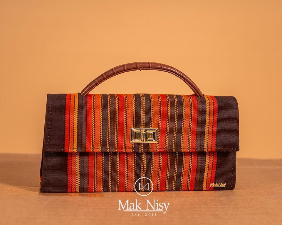 Women's Eco-Friendly Dashiki Vegan Leather Crocodile Texture Asoke & Brown Tones Turnlock Closure