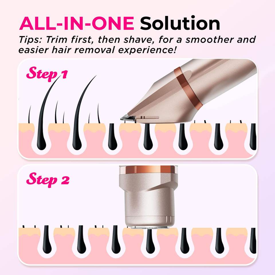 Rasoir électrique étanche IPX7 pour femme, tondeuse bikini avec double lame et grille de rasage pour le corps, idéal pour les voyages et l'utilisation en camping-car, lavable