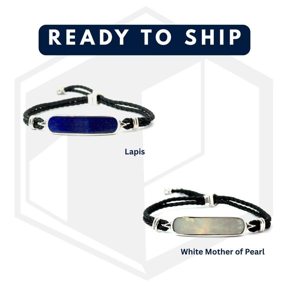 Bracelet rectangulaire arrondi en argent 925 | Cordon en nacre noire et cristal | Bijoux pour femmes sur mesure OEM