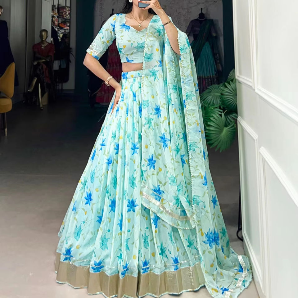 Women's Elegant Bollywood Designer Ethnic Wear Floral Printed Heavy Georgette Lehenga Choli Set Assorted Pastel Colors for Party