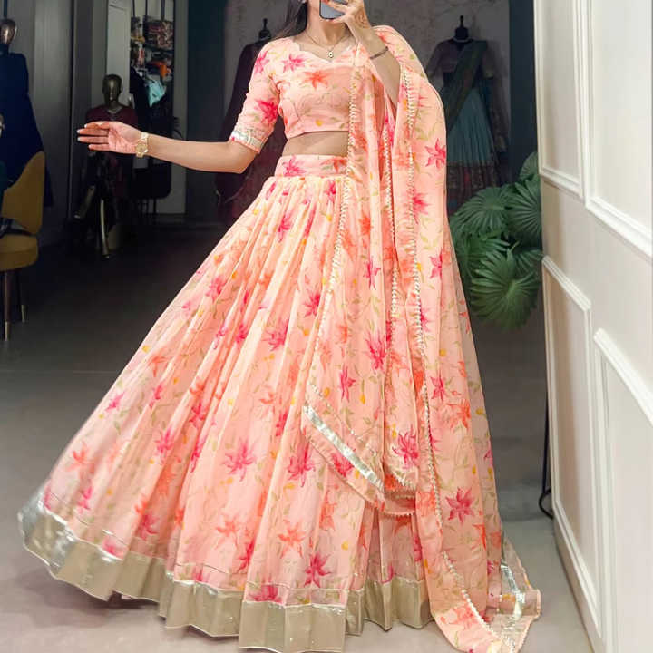 Women's Elegant Bollywood Designer Ethnic Wear Floral Printed Heavy Georgette Lehenga Choli Set Assorted Parties Indian