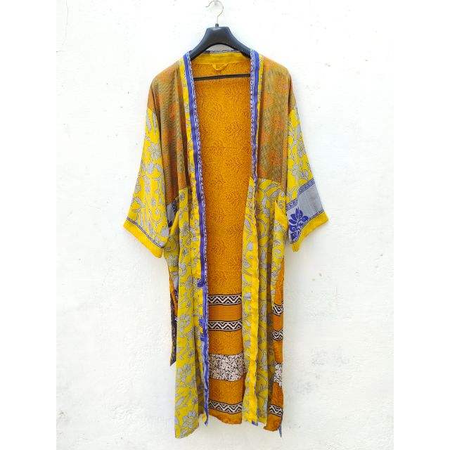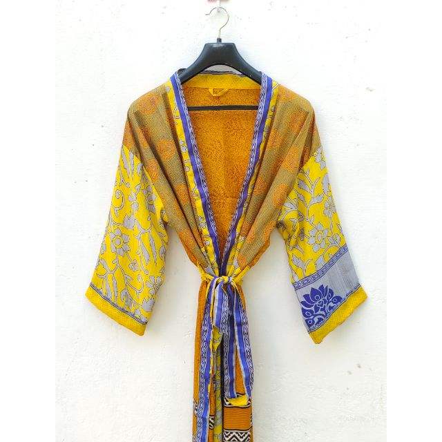Women's Elegant Long Silk Bathrobe Patchwork Floral Kimono Jacket Home Use Beach Wear Spring Autumn Breathable Nightwear