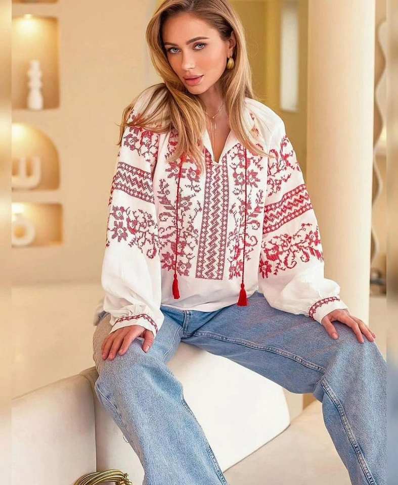 Women's Elegant White Best Quality Blouse Traditional Ukrainian Style Sweet Embroidered Heritage Wear with Lace Decoration