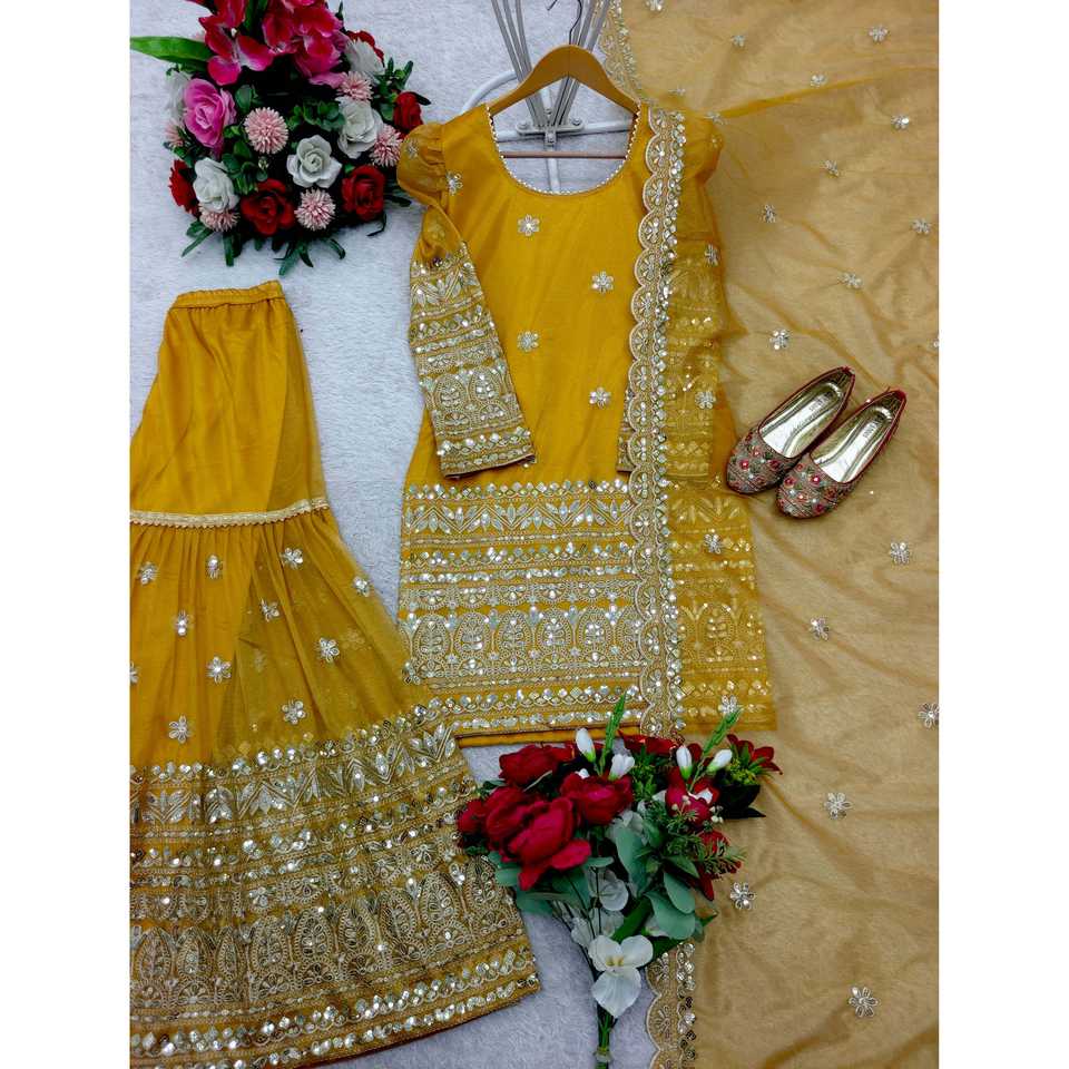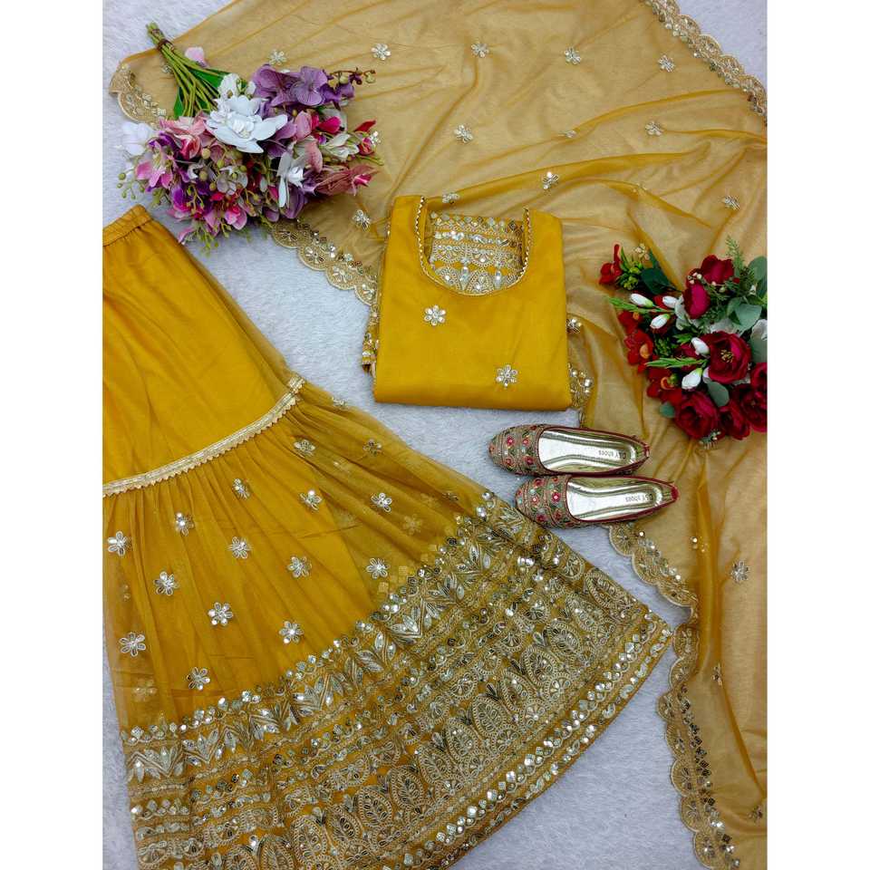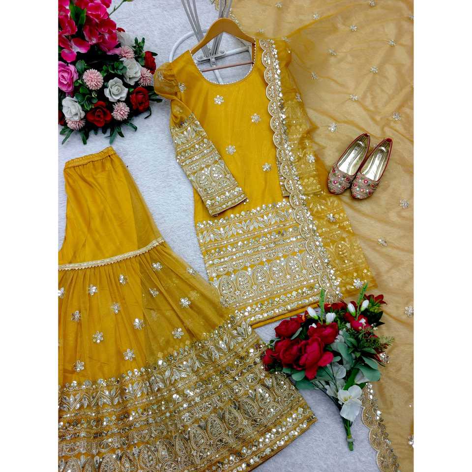 Haut de travail brodé pour femmes-Sharara et Dupatta pour la fête