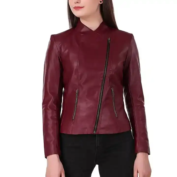 Veste en cuir avec patch brodé pour femme avec remplissage en coton Veste femme respirante avec manches en cuir