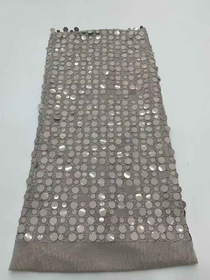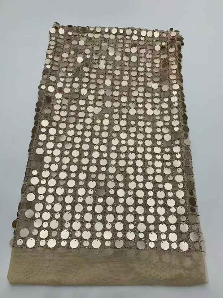 Robe de soirée style évolution pour femme avec tissu en maille ajourée brodée à sequins, tricoté chaîne extensible, 100 % polyester