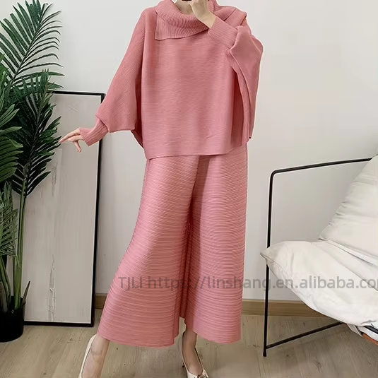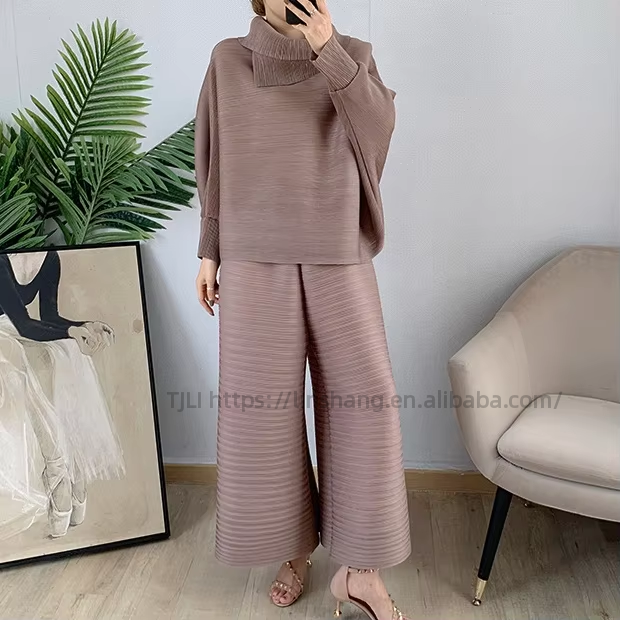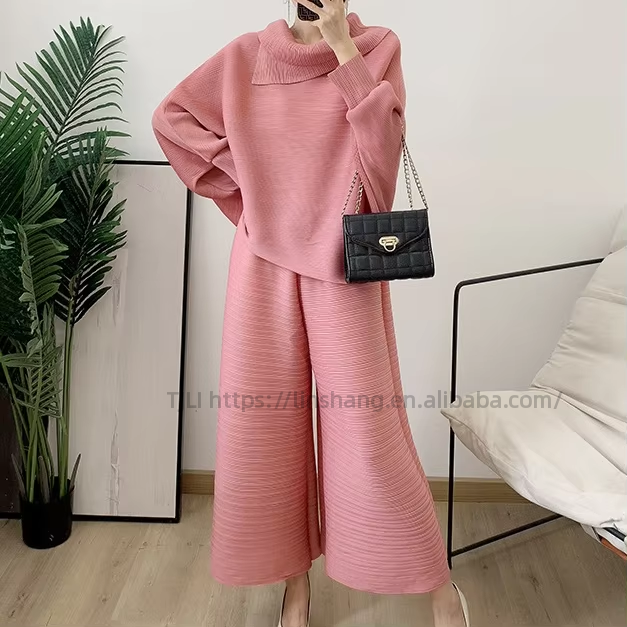 Ensemble 2 pièces pour femmes, nouvelle collection automne, chemisier à col et pantalon large plissé, coupe ample, grande taille, tendance