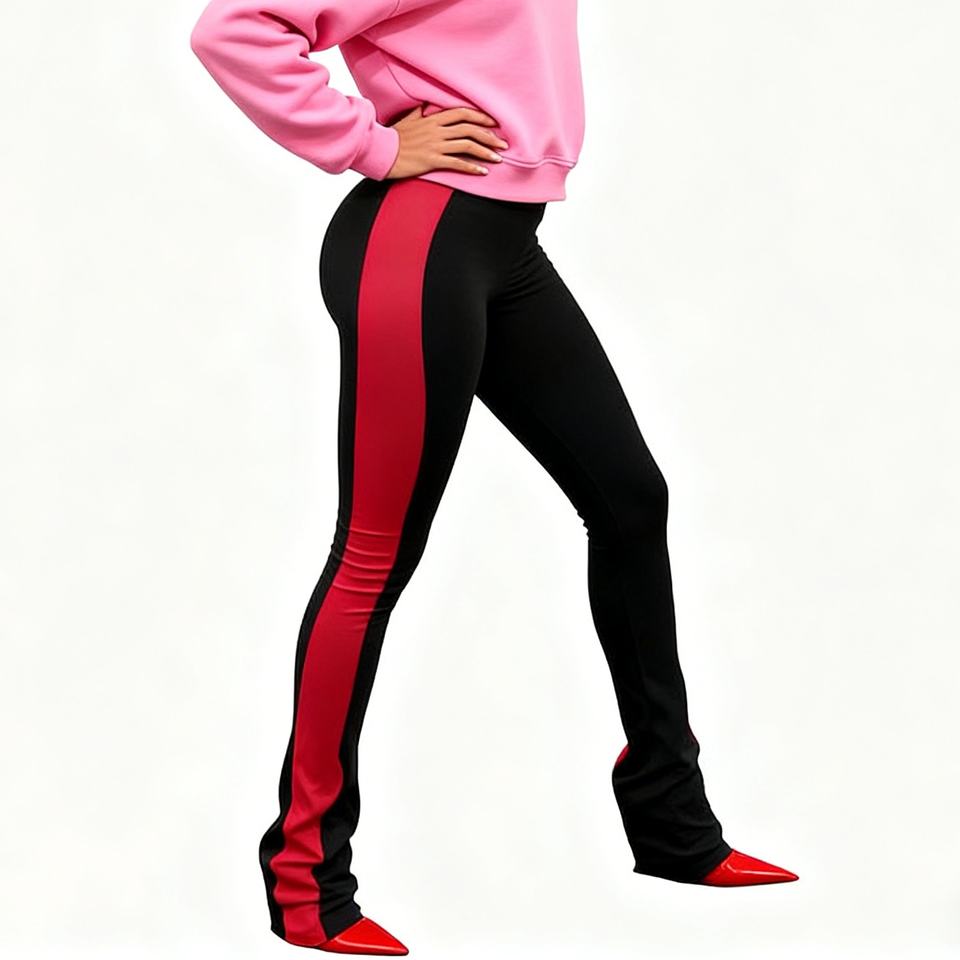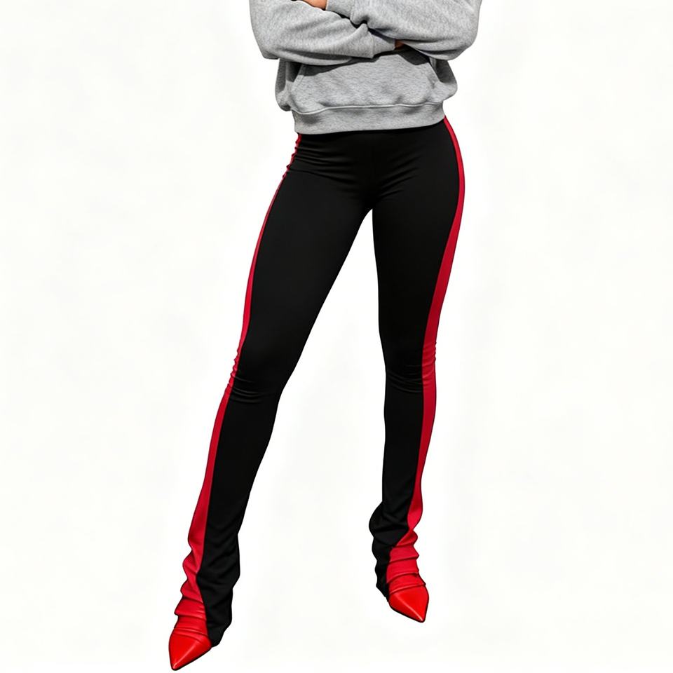 Pantalon long décontracté pour femme, taille haute, coupe droite, extensible, ajusté, color-block, athlétique, collection automne/hiver, tendance