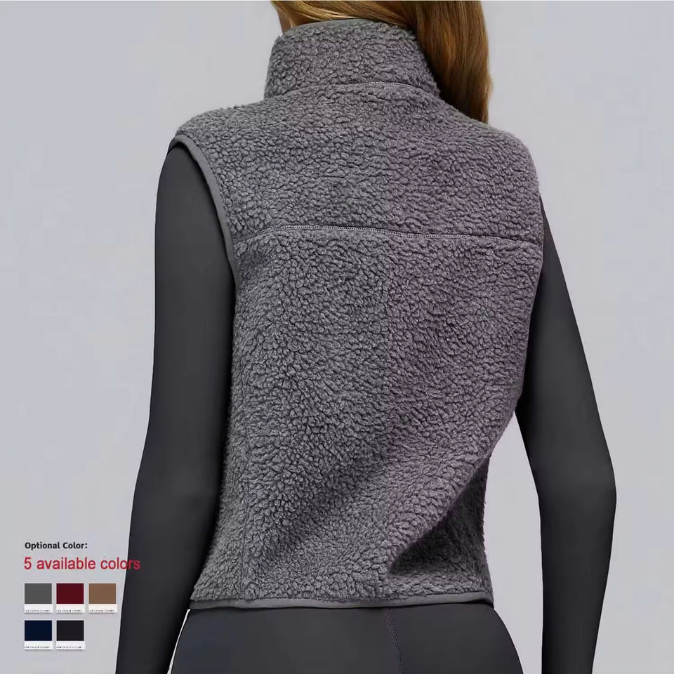 Femmes automne/hiver col montant Plus velours sport gilet sans manches fermeture éclair gilet extérieur course haut Yoga gilet