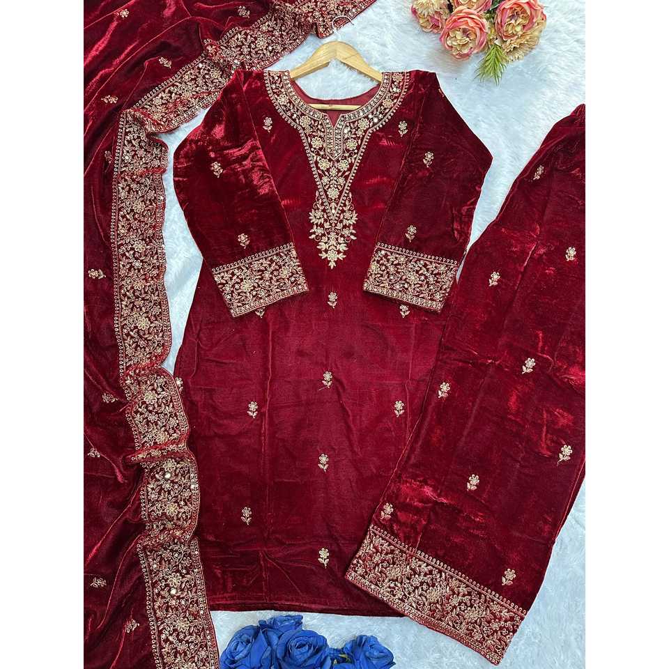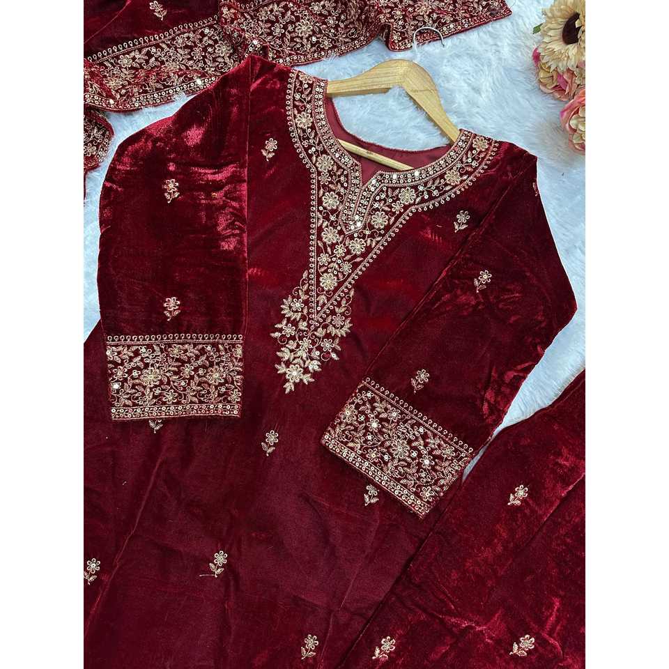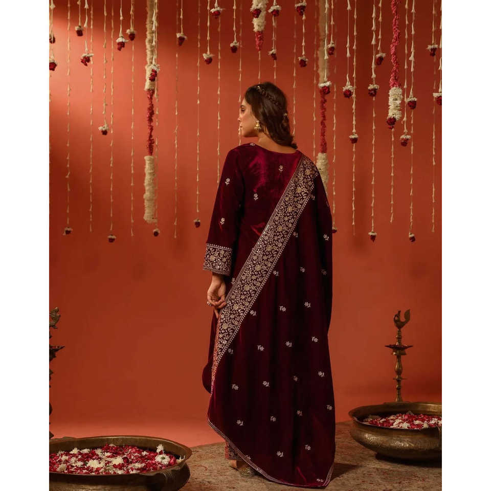 Ensemble de costume brodé fantaisie pour femmes - Haut, bas et dupatta magnifiques