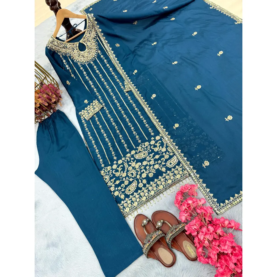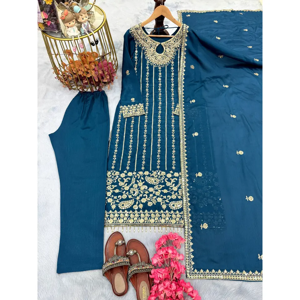 Heavy Chinon Silk with embroideryDupatta Fabric
