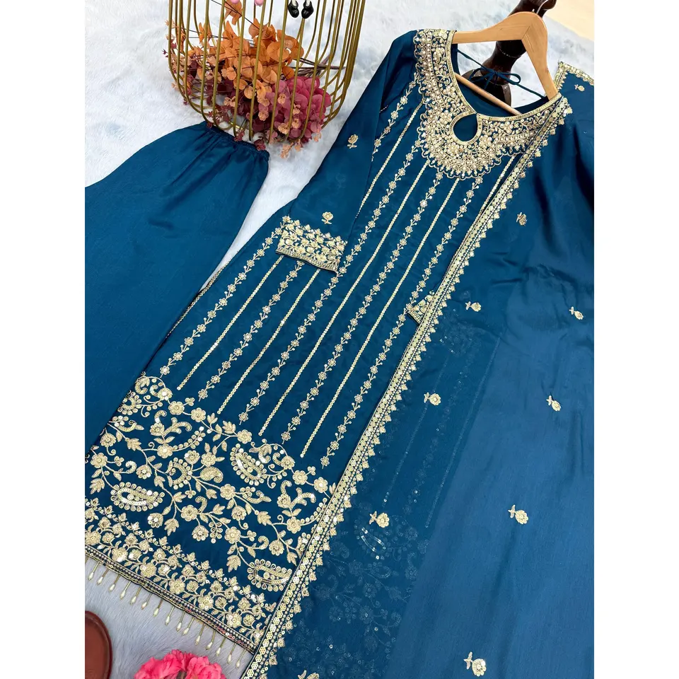 Top Fabric:Heavy Chinon Silk with embroidery and moti work