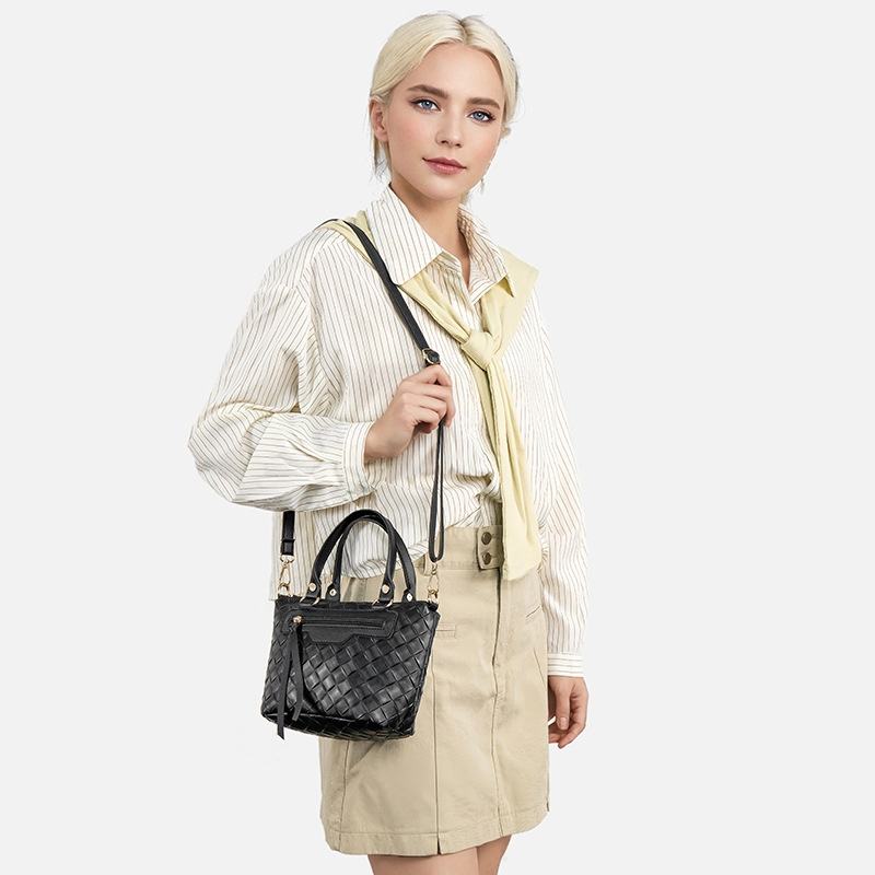 Women's Fashion-Forward Casual Crossbody Shoulder Bag PU Woven Embossed Bucket Mini Messenger Style for Dates