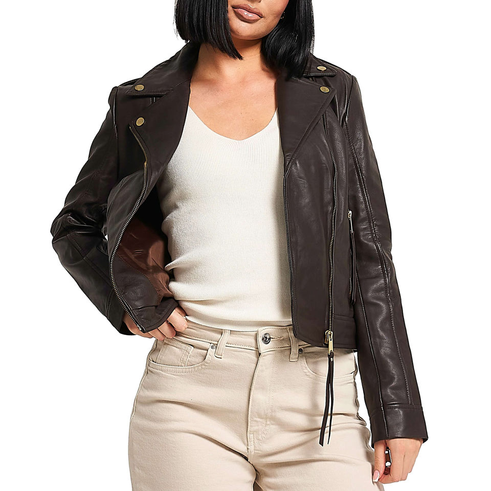 Women's Fashion Genuine Leather Long Sleeved Breathable Jacket with Knitted Processing Customizable Winter High Quality