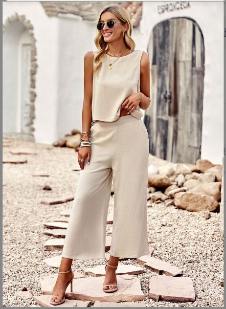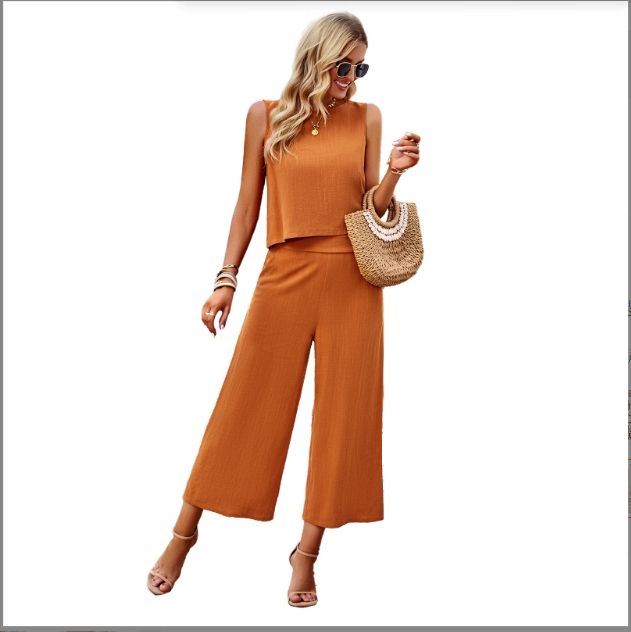 Nom du produit:Mode femme couleur unie tempérament sans manches lâche décontracté ensemble