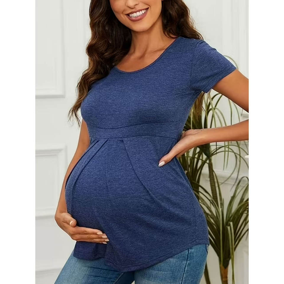 Haut de maternité à manches courtes bleu marine pour femmes Chemise de grossesse à la mode et sexy avec plis à volants Style débardeur doux
