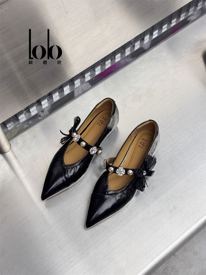 Femmes à la mode printemps automne bride à la cheville chaussures 3cm en peau de mouton Ballet avec perle nœud papillon respirant et antidérapant