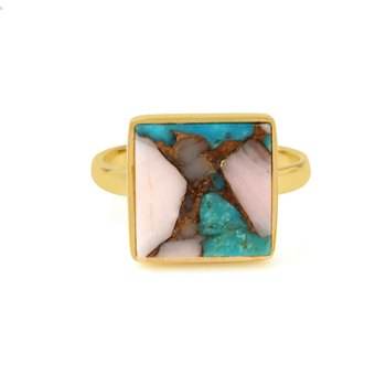 Nom du produit:Naturel rose opale cuivre turquoise argent plaqué or bague de déclaration
