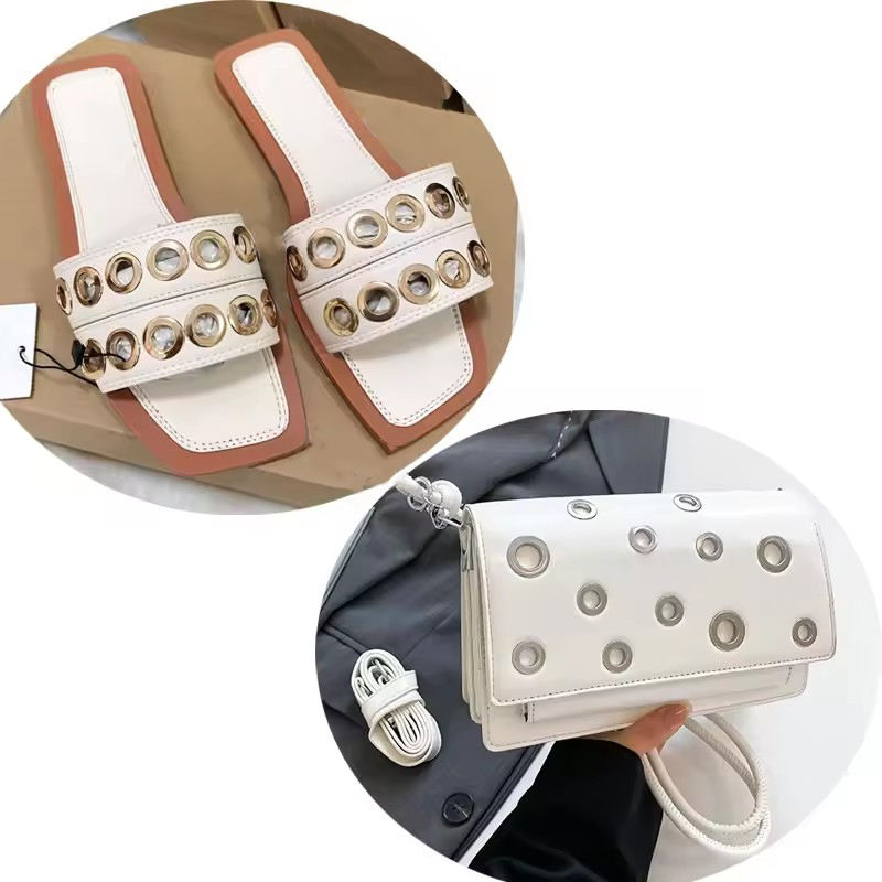 Pantoufles à fond plat pour femmes nouvelle boucle de matériel conception perforée Willow Nail Circle sac à bandoulière vêtements quotidiens sandales plates