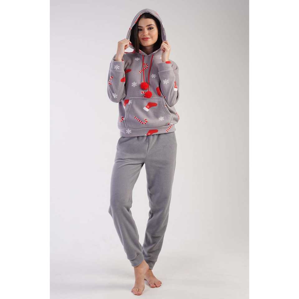 Women's Fleece Hooded Pajama Set with Kangaroo Pockets and Cuffed Sleeves Dropped-Shoulder Design