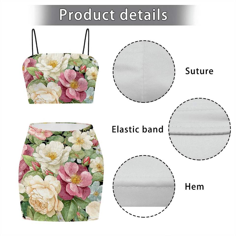 Image personnalisée Débardeur court à fleurs et mini jupes au-dessus du genou pour femmes Taille XS Ensemble deux pièces Tops courts