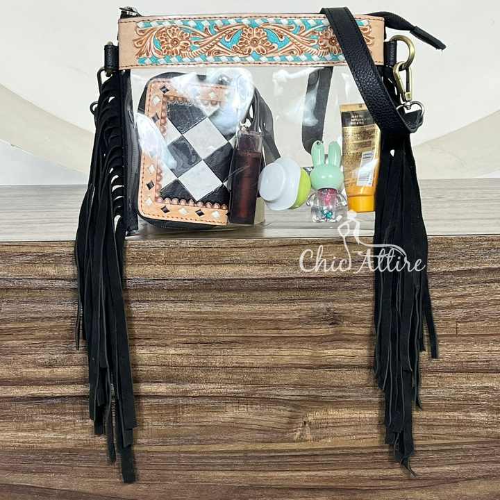 Product name:Handcrafted Clear Stadium Fringe Crossbody Bags