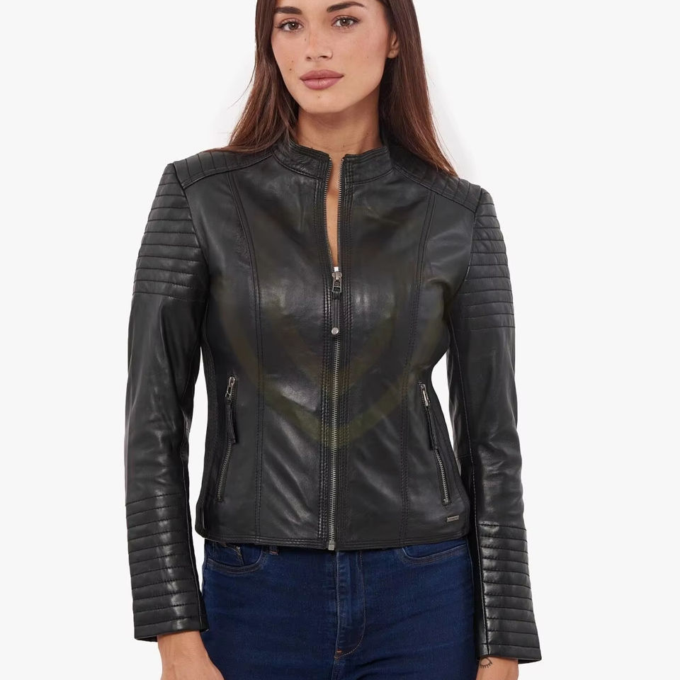 Veste en cuir pour femme avec fermeture éclair sur le devant, respirante, style streetwear, veste en cuir pour femme
