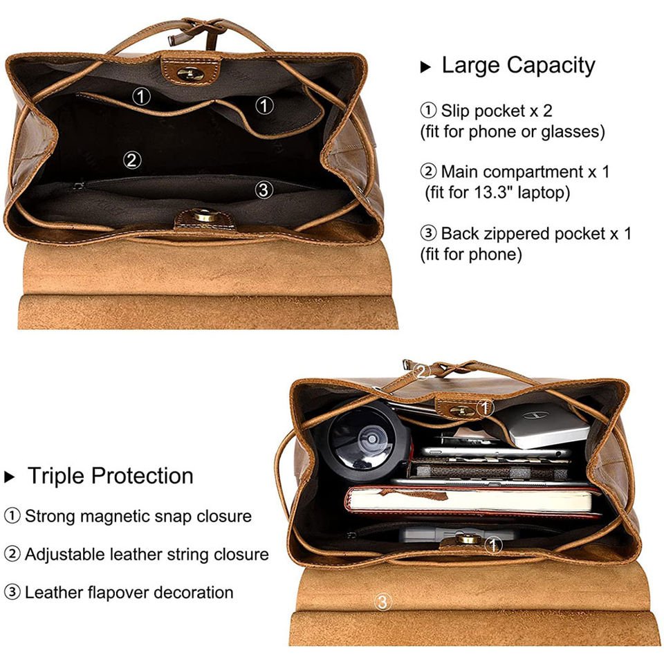 Keywords:High Quality Cowhide Leather Backpack