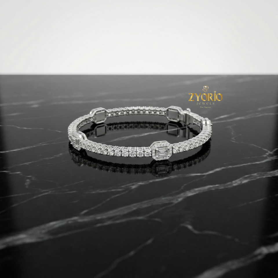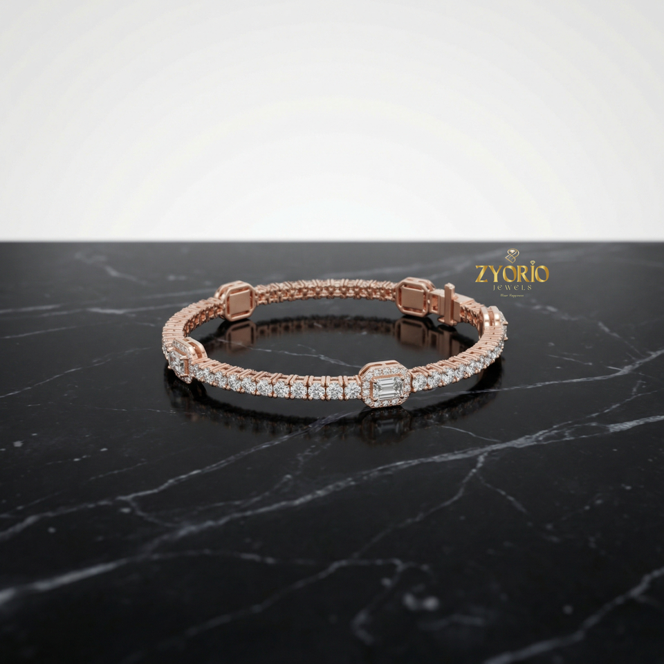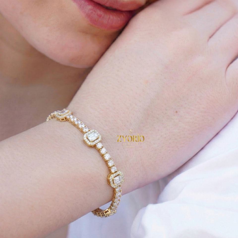 Bracelet à maillons en or géométrique pour femme, serti de diamants de laboratoire, design élégant et classique, idéal pour fiançailles, anniversaire, fête