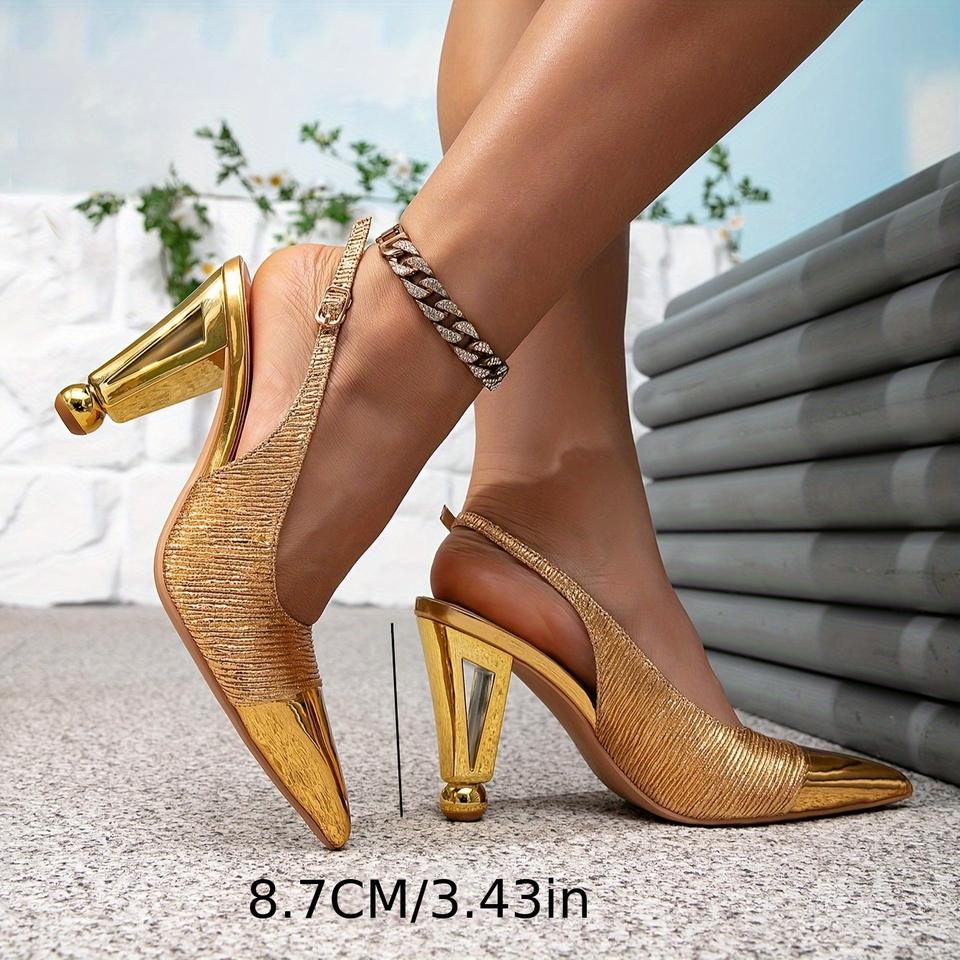 Mules à talons hauts dorées à bout pointu et boucle pour femme – Sandales de soirée tendance pour l'été