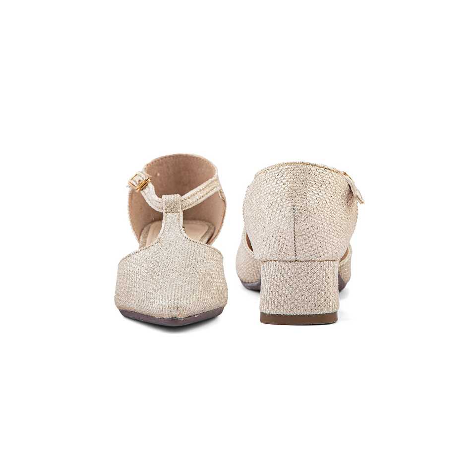Women's Golden Stilettos Pumps KD2415 Bridal Sandal Heels with 5cm Thin Square Heel Slip-On Closure