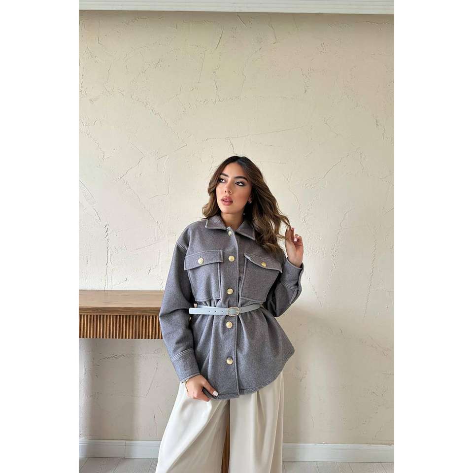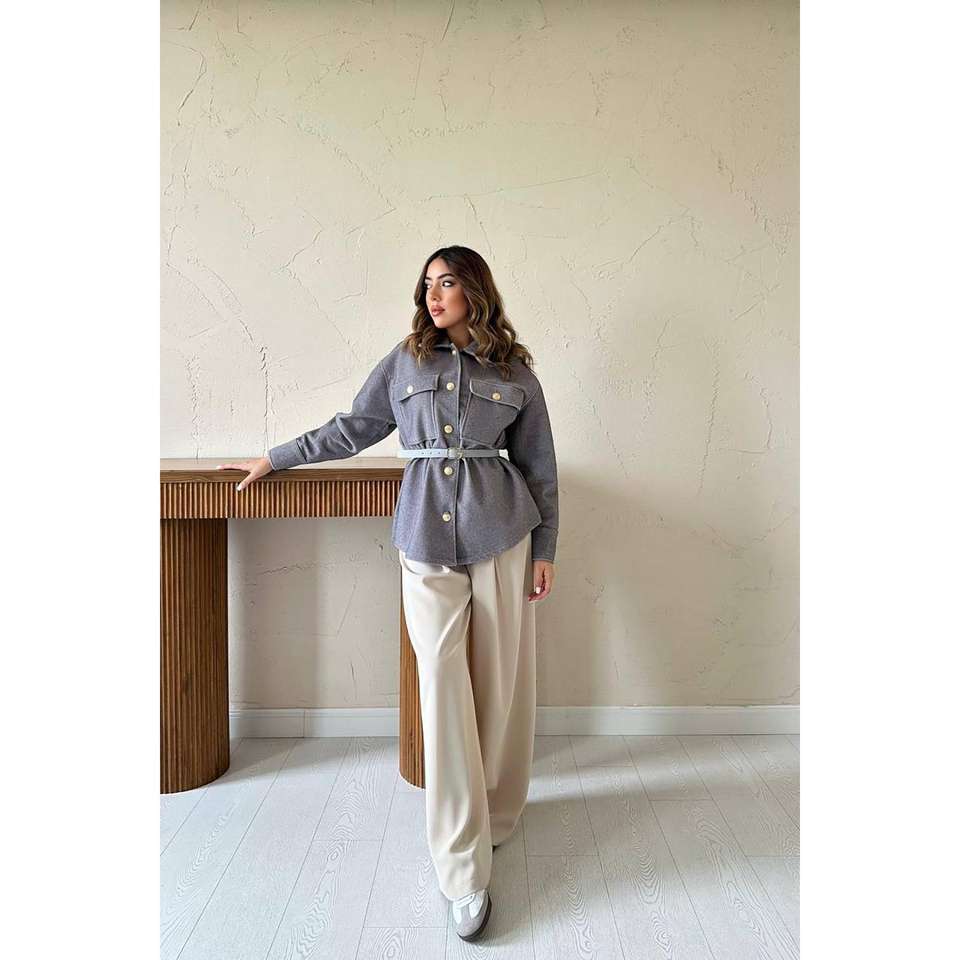 Women's Grey Cashmere Blouse with Gold Buttons-Wholesale
