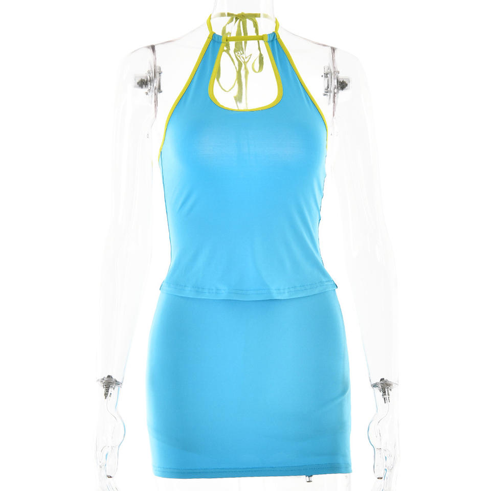 Ensemble deux pièces dos nu pour femmes, col licou, couleur unie, polyester, costume décontracté pour le printemps et l'été