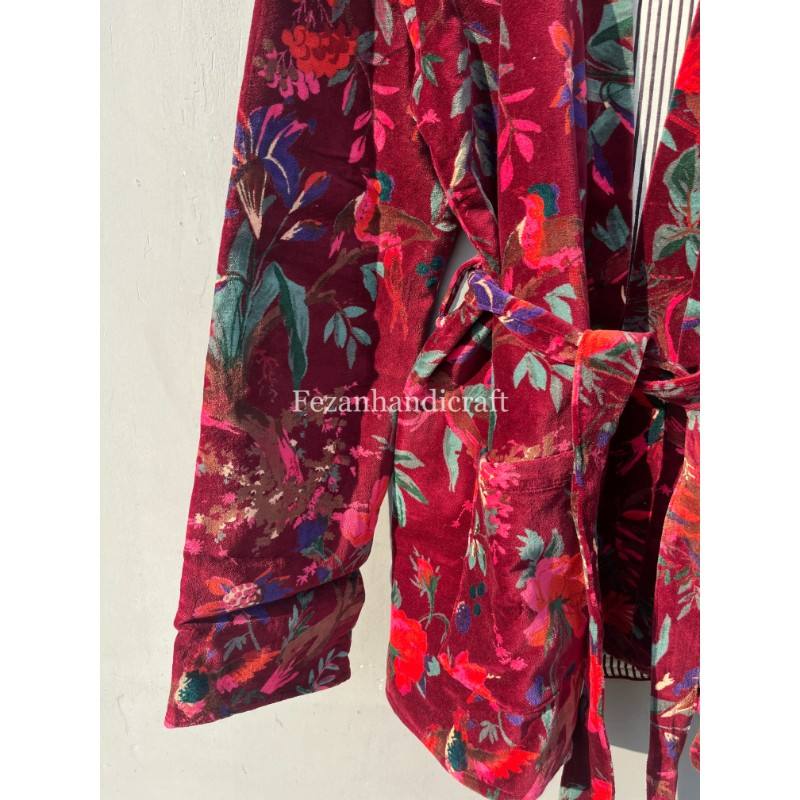 Veste d'hiver unisexe faite à la main impression d'oiseau personnalisable coton velours Suzani tissu broderie tricoté pour les femmes automne