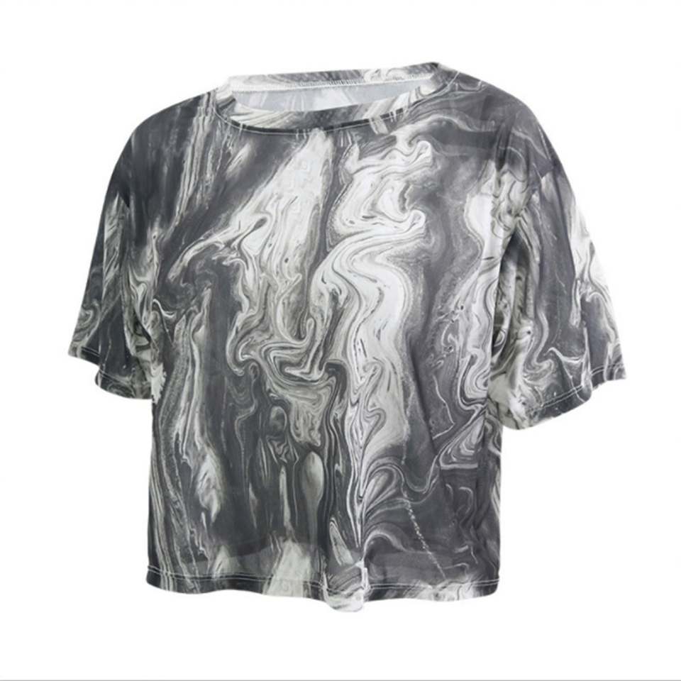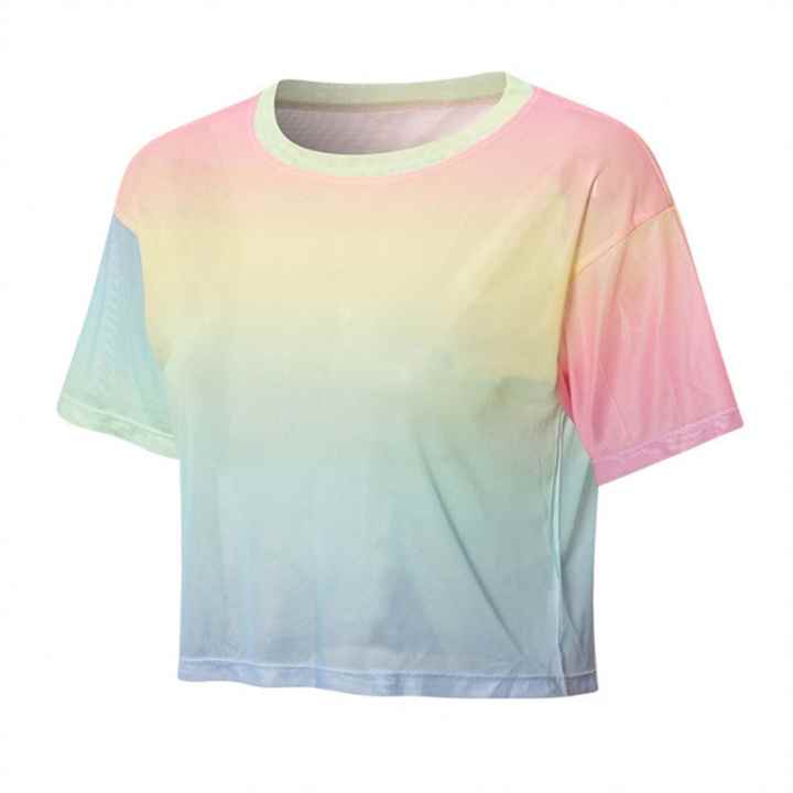Haut de yoga sportif à séchage rapide élastique pour femme avec logo personnalisable à manches courtes et col rond pour le fitness et la course d'été