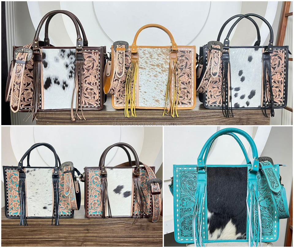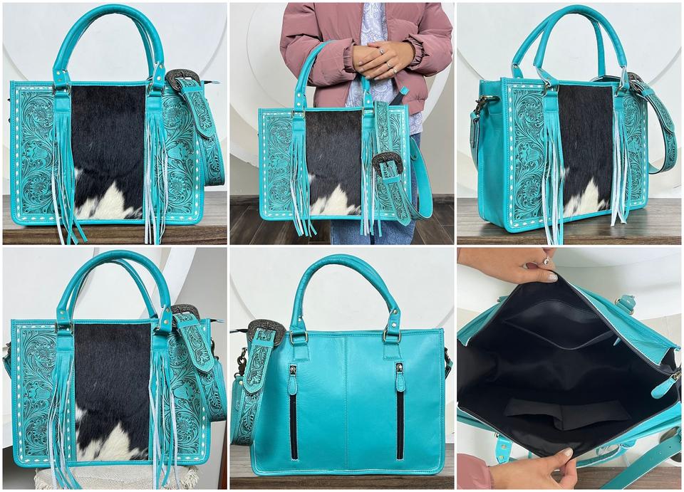Product name:Hand Tooled Cowhide Leather Crossbody Tote Bags