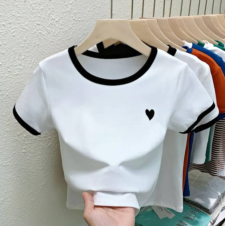 Women's High Quality 100% Cotton T-Shirt Custom Embroidered Logo Quick Dry Flannel O-Neck Blouse Size XL-for Summer