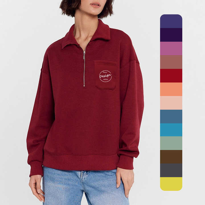Femmes de haute qualité 400GSM polaire quart Zip pull Anti-rides goutte épaule broderie Polo sweat pour l'hiver