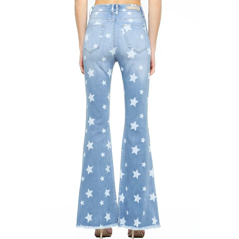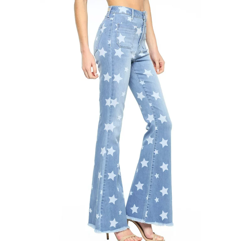 Women's High Rise Star Denim Flare Bell Bottom Jeans Women's Pants Rise Flare Jeans for Women's